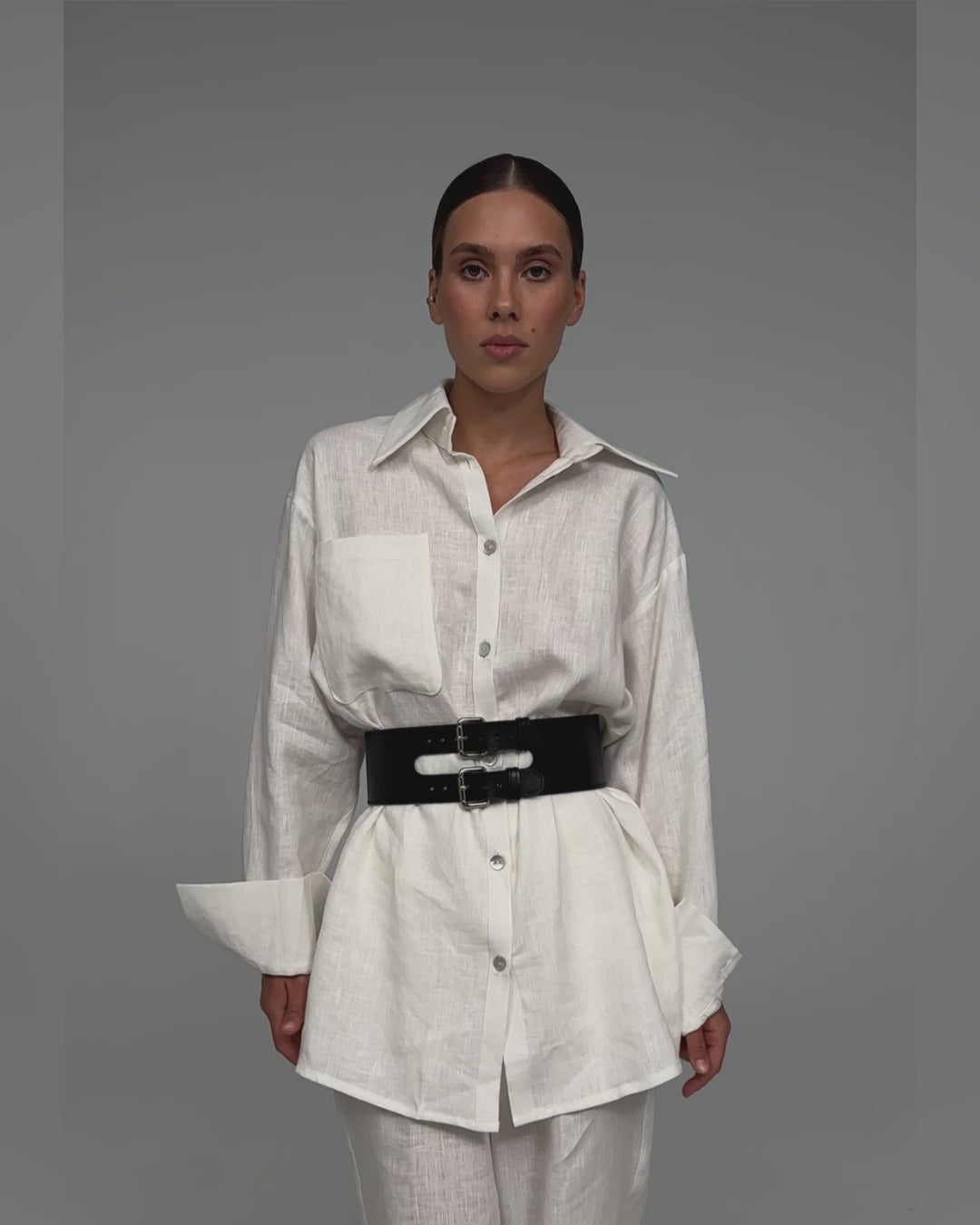 Широкий шкіряний ремінь JUN з подвійною пряжкою